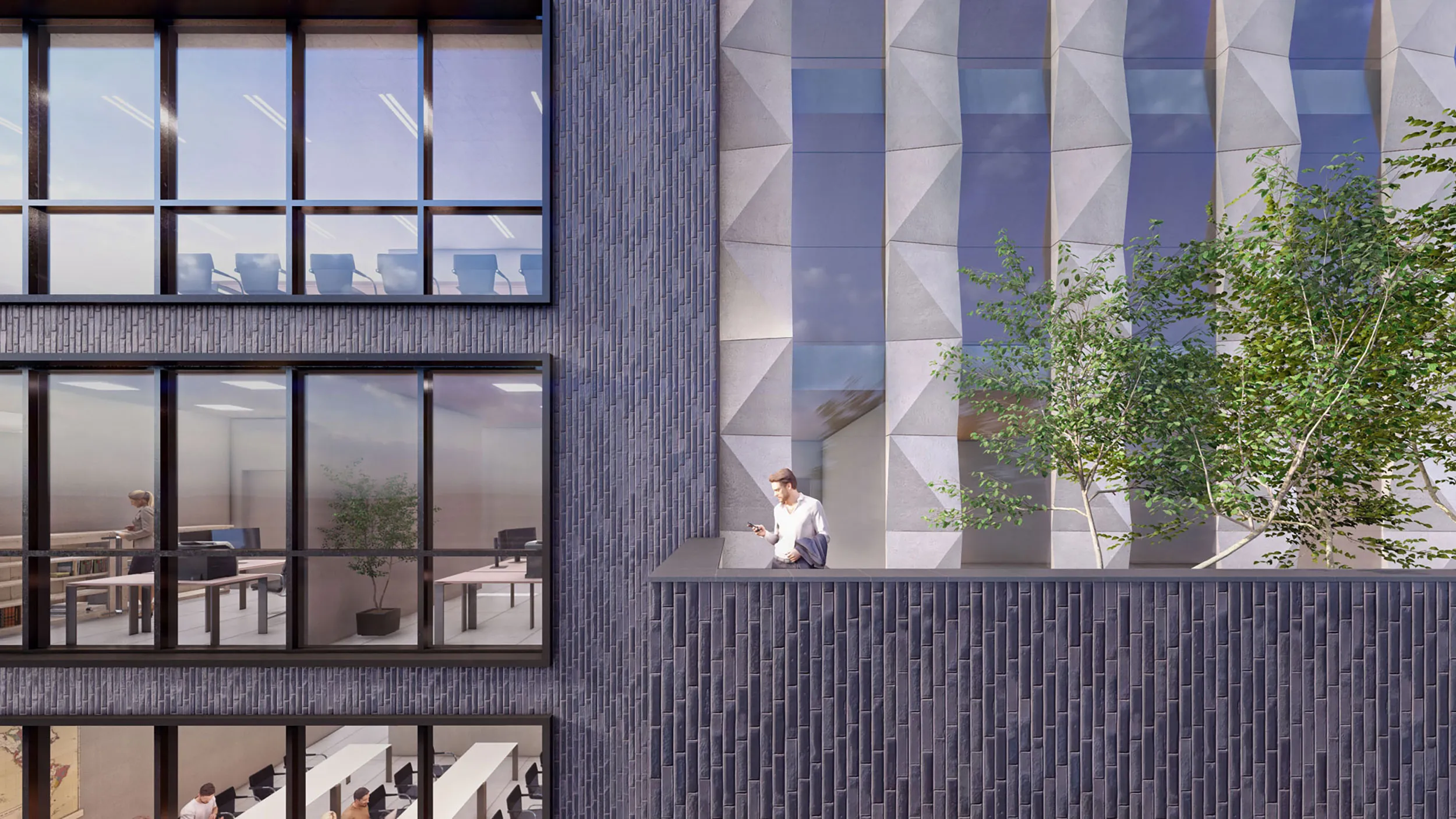 14th Story mixed used building 139,000 gross SF School: 57,107 gross sf – 57,000SF – Charter School Community Facility: 82,000 gross sf Separate entrances for School and Community Facility components Prominent street exposure Elevated podium entrance Glass & metal canopy Glass and stone storefront base Dynamic Metal panel, masonry and glass façades
